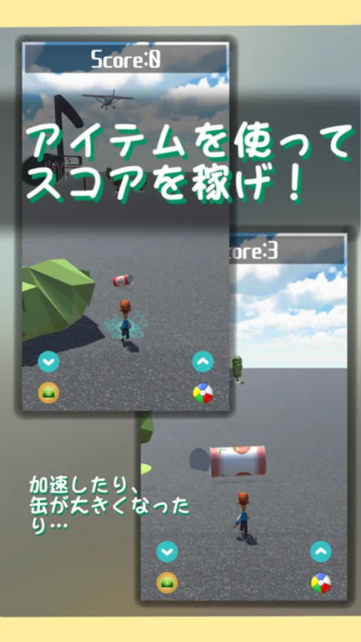 Empty cans are freely blown off and rolling over, so let 's guide them to a position where the characters can kick the empty cans.