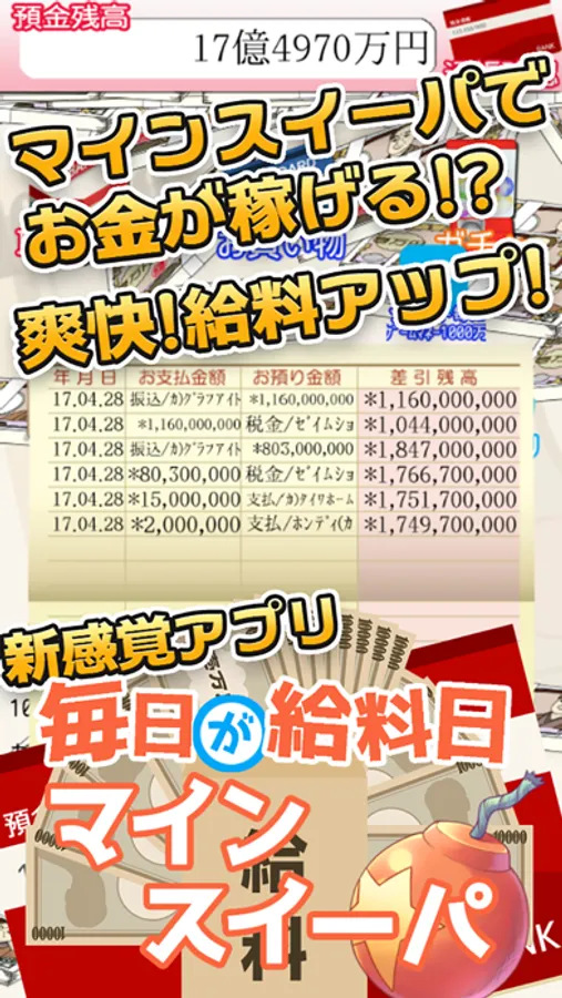 マインスイーパーの爆弾以外のタイル1マスが、そのまま100万円に換算されて預金口座に入金!