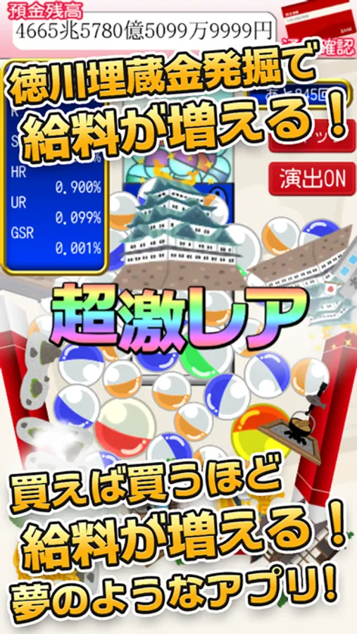 預金口座のお金で回せるガチャはコンプリートする度に、給料がアップ!