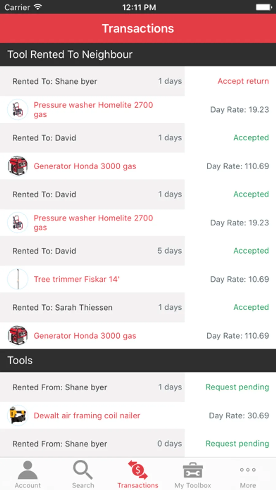 A rating system is in place so you rest with ease knowing that your tools will be treated with care. The good neighbour keeps track of who has your tools and will make sure your tool comes back the way it left. All transactions are conducted through the app. Imagine a community where you can just walk down the street for a tool. instead of running to the hardware store and spending a fortune.