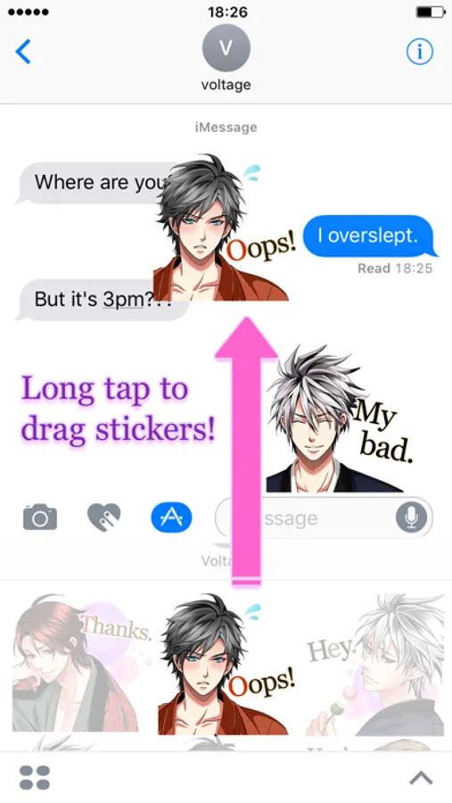 4. Tap a sticker to send directly, or tap & hold to peel the sticker and place anywhere in the chat
