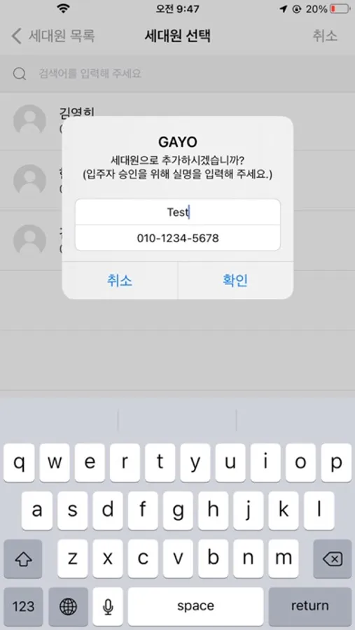 이후 출입증을 보내어 같은 앱을 설치한 사용자에게도 기간별 아파트 출입을 허락 할 수 있습니다.