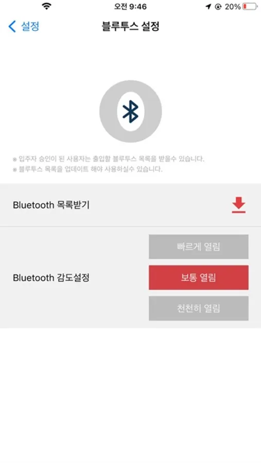 승인받은 사용자는 블루투스를 이용하여 아파트 공동 출입문을 출입 할 수 있습니다.