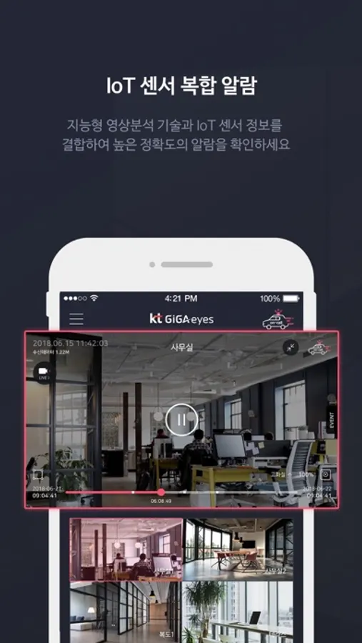 1. (4K 초고화질 영상 실시간 모니터링 & 저장) KT만의 국내 최고 영상처리 기술로 실시간 영상뿐만 아니라 녹화 영상까지 4K 초고화질 영상을 제공합니다. 이제 먼 곳까지 선명하게 확인 하세요.