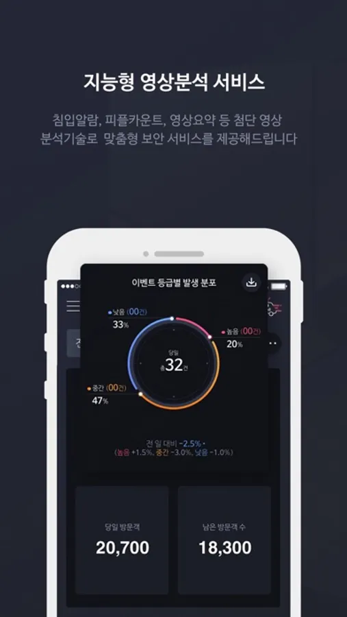 2. (딥러닝 AI 지능형 영상분석 서비스) 첨단 영상 분석 기술을 기반으로 침입 알람, 스마트 영상요약 등 보안 기능 외 출입고객 카운트, 매장 체류 시간 등 마케팅에 활용할 수 있는 다양 정보를 제공합니다.