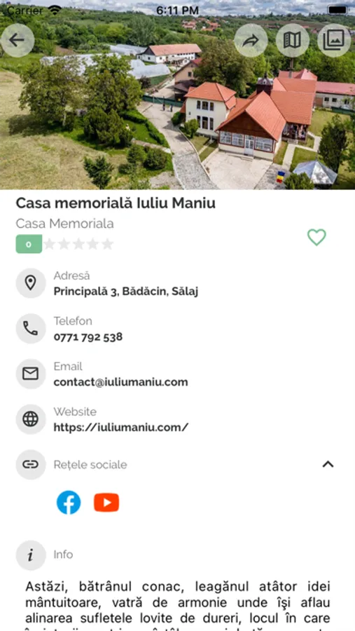 Toate punctele de interes pot contine detalii precum: imagini, text, adresa, telefon cu posibilitatea de apelare directa, adresa de email cu posibilitatea de a trimite mesaj, website, orar, locatie pe Google maps si optiuni de navigatie.