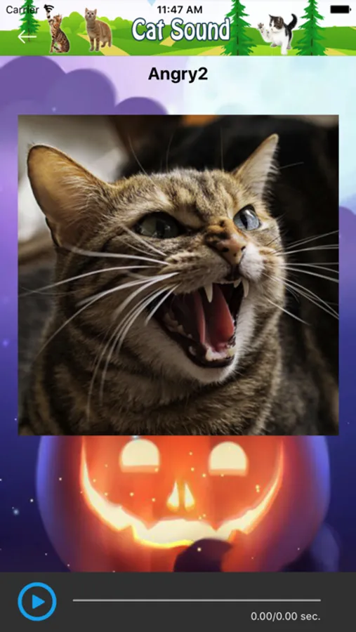 Want to play with your cat or confuse him? Or maybe you just want to hear some cat sounds? Whatever the reason you have, you will get a nice collection of cat sounds: meowing, hissing, growling, purring, angry cats, little kittens, etc.