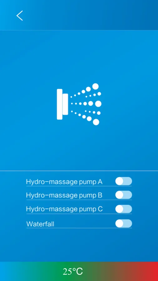 通过蓝牙4.0来控制多功能浴缸的各种功能,包括自动注水,手动注水,温度设定和显示,花洒出水,水疗按摩,气泡浴,纳米气泡,脉冲水疗按摩,自动清洗,光疗,收音机,故障排除等功能。