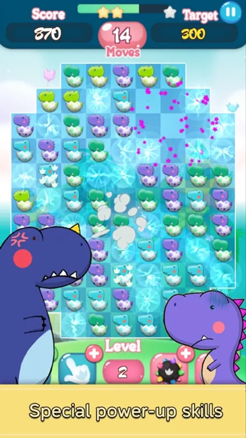 Some special dinosaur blocks may clear all dinosaur blocks.