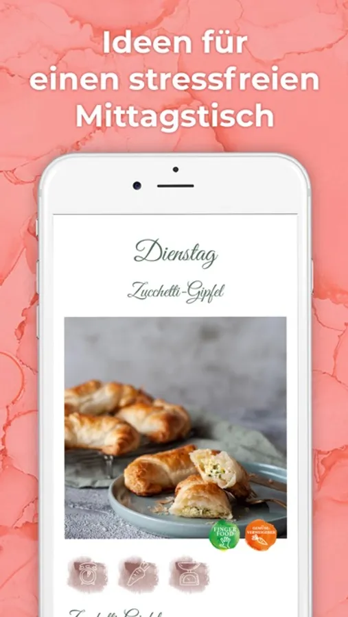 Rezepte einfach finden. Mit der Suchfunktion findest du alle Rezepte in der App mit einem Klick.
