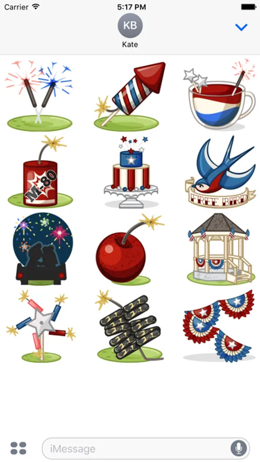 Spangle your text messages with stars and sparklers with this patriotic set of stickers from the makers of PackRat, the largest online card collecting game in the world!