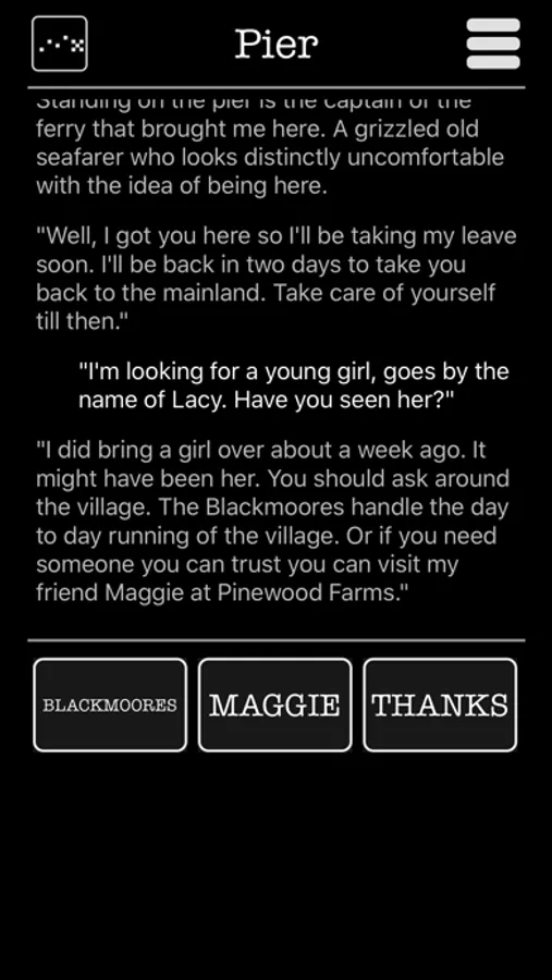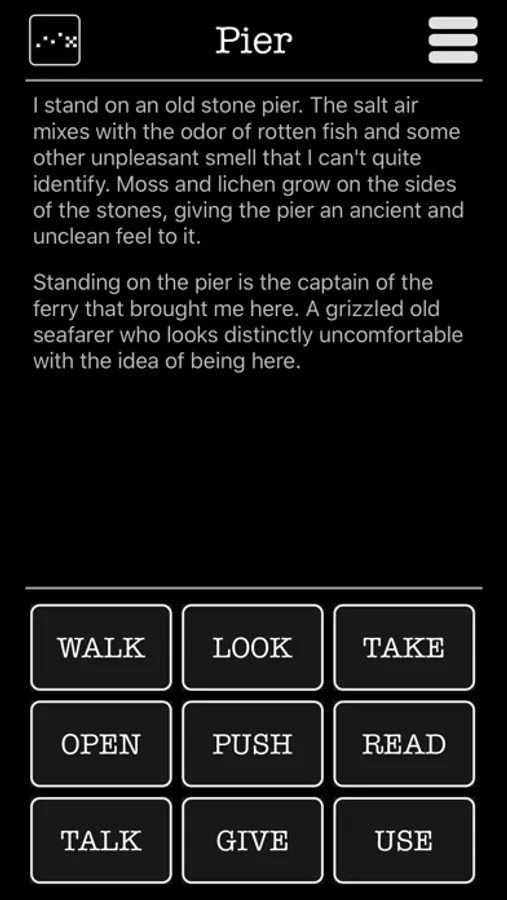 Horror at Innsport is an exploration adventure game inspired by the works of H.P. Lovecraft, where players explore and investigate a large open world map, progressing though an engaging and exciting story. It is a mobile phone adaption of the classic text-based adventure genre, similar to the point-and-click classics. The game combines a bleak environment, an sense of underlying dread, and several action sequences with moments of comedy to keep you entertained.