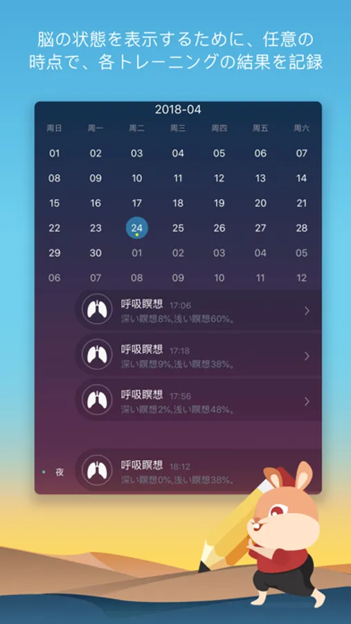 あなたが各訓練の結果、瞑想の習慣へのより包括的な洞察を見るためにいつでもカレンダーによると、無限の時間の履歴の結果。
