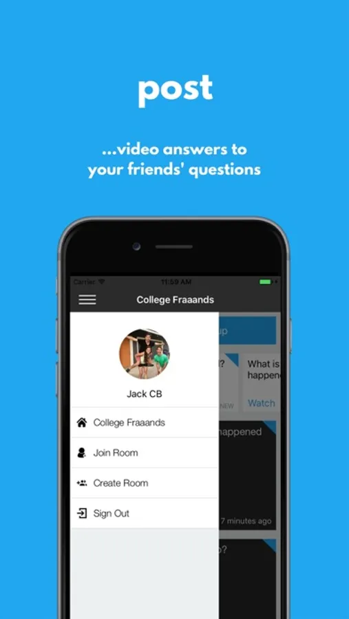 ViewMe is about staying in touch with your friends in a different kind of way. Join a room with your friends. Ask questions to that room. Make video responses to your friends questions. And watch all the answers stitched together in a row like a biography of your friend group!
