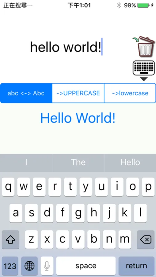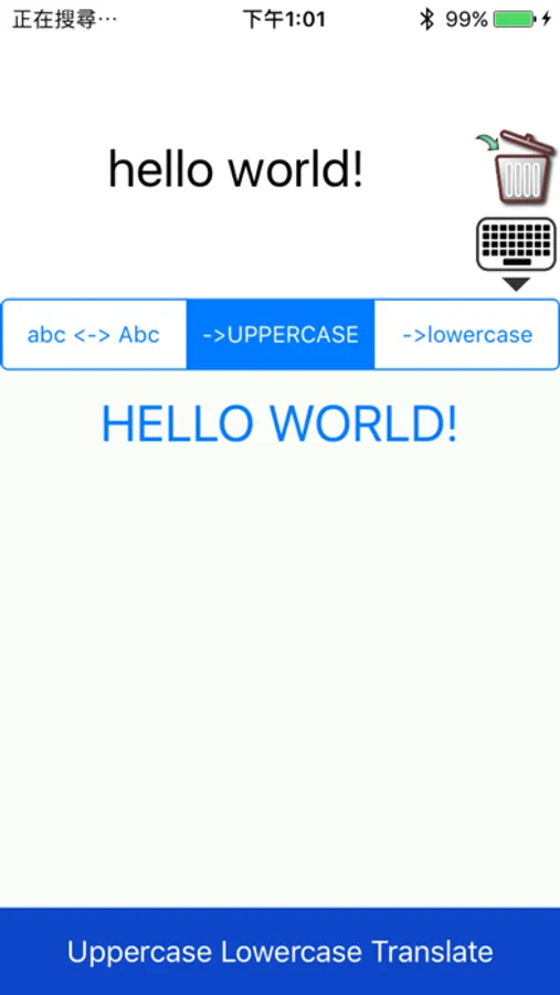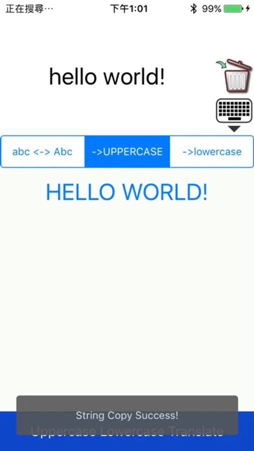 Use this application, you can transfer string to uppercase or lowercase. (All characters to Uppercase / Lowercase / Uppercase at beginning)