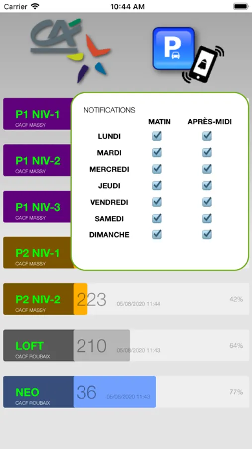 Affiche les places disponible dans chacun des parkings, et vous envoi en temps réel une notification dès qu'un parking est plein.
