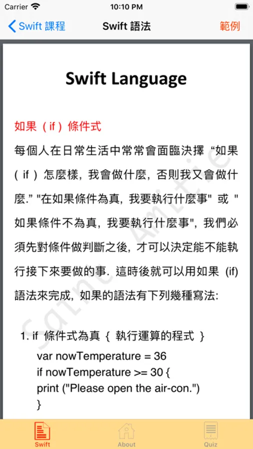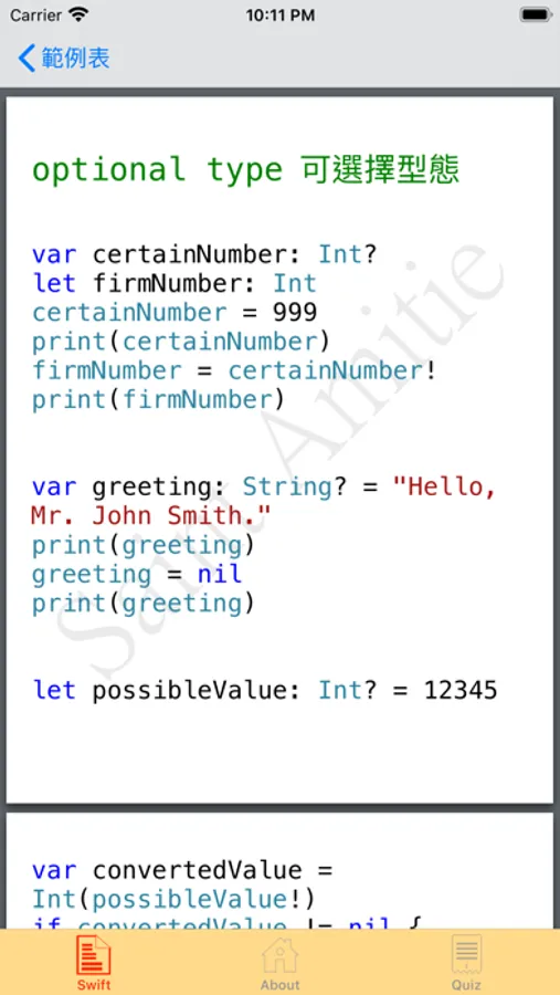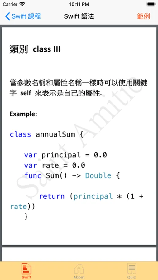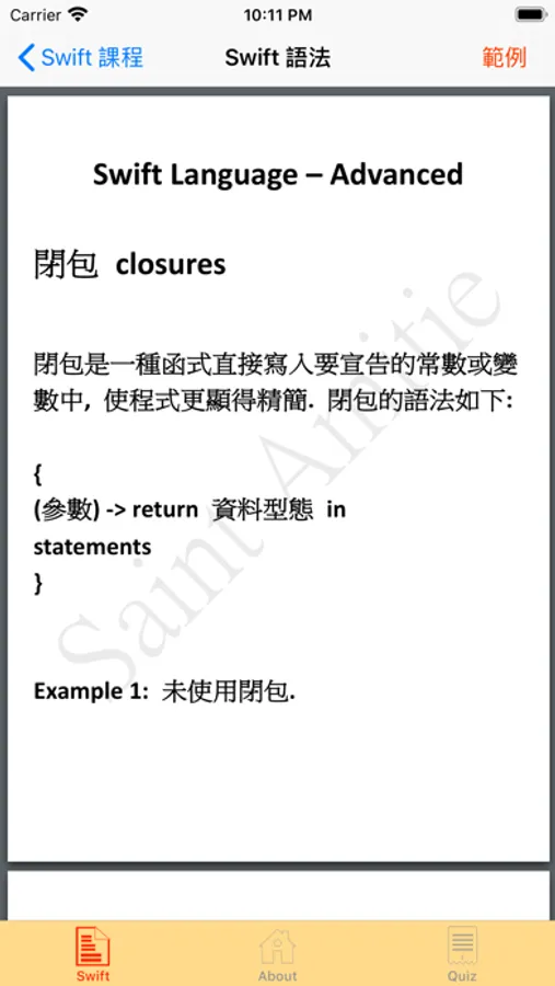 Saint Amitie Corporation is an educational institute dedicated to English learning. We produce this app using Xcode and reserve our intellectual property right. This app is dedicated to those who have no experiences on coding language using Swift. We present in this app with basic coding skills and also enclose some examples and quizzes to enhance their learning.