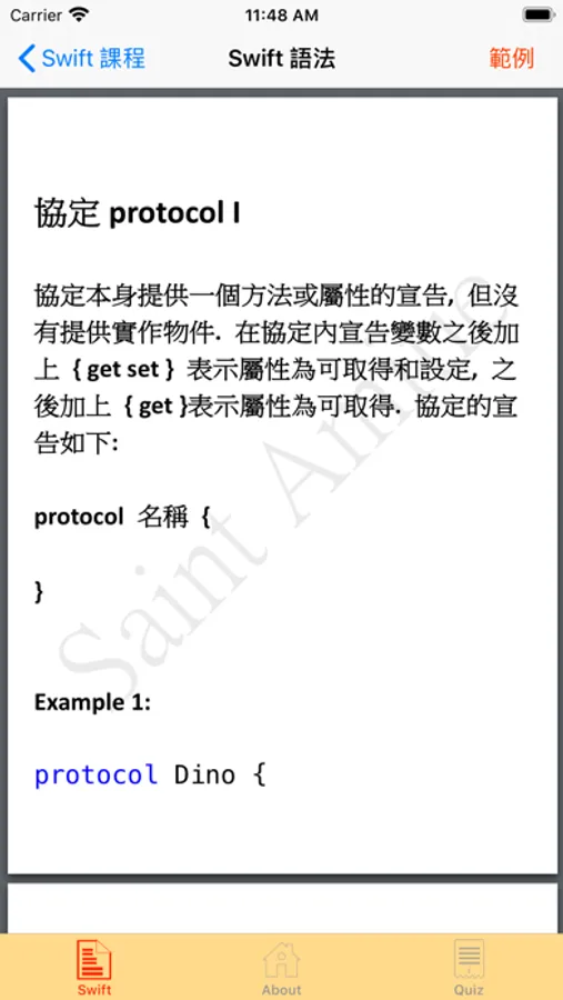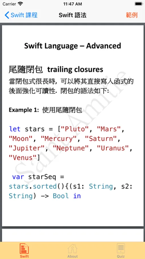 Saint Amitie Corporation is an educational institute dedicated to English learning. We produce this app using Xcode and reserve our intellectual property right. This app is dedicated to those who have no experiences on coding language using Swift. We present in this app with basic coding skills and also enclose some examples and quizzes to enhance their learning.