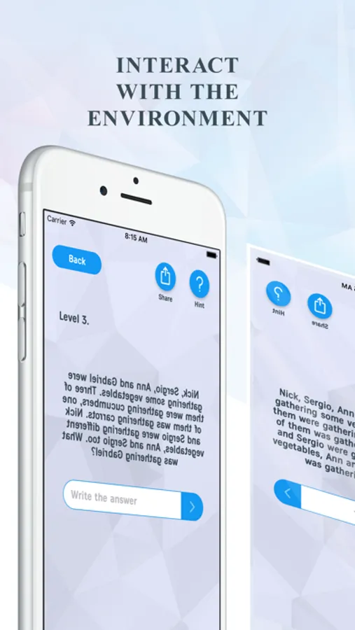 The game is a combination of different types of puzzles: hardware capabilities of the device, rebus the answer to which is not some word, but some action you have to realize, levels where you need to act beyond the game itself.