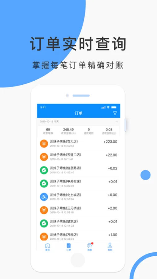*门店订单数据实时查询,以及日汇总,月账单可辅助账目统计