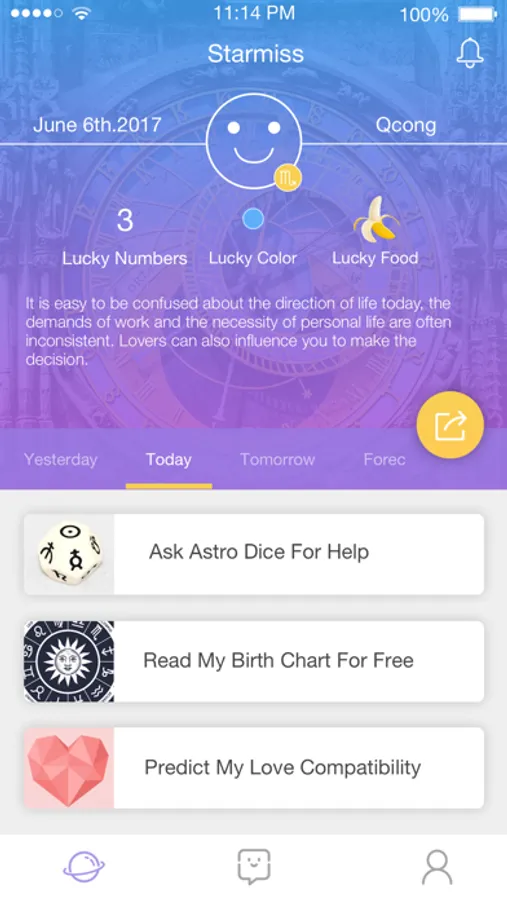 Horoscope customized by your birth date will be delivered every morning which is prepared by Starmiss based on astrology theory.