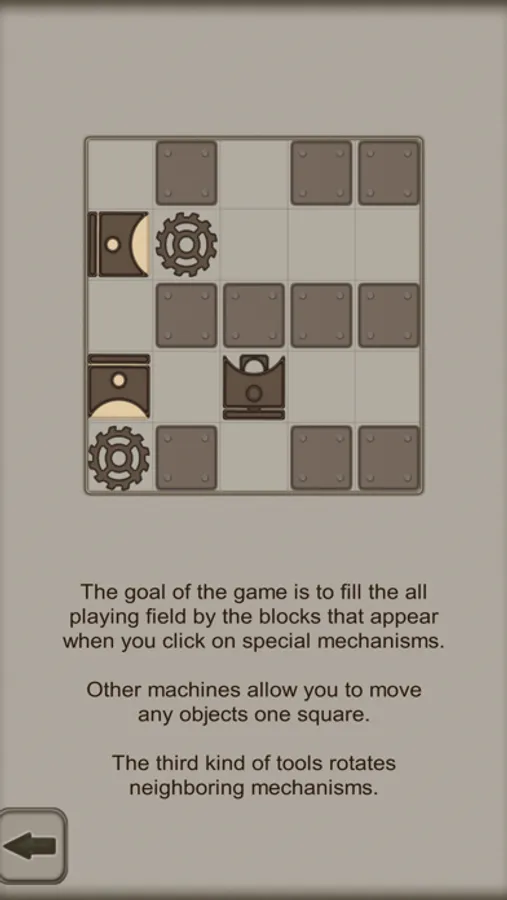 The goal of the game is to fill the all playing field by the blocks that appear when you click on special mechanisms.