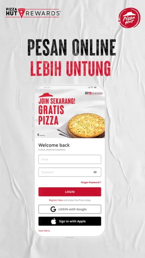 - Sign-in made easy with Google Account Log-in or you can use same log-in details used for Pizza Hut Indonesia apps