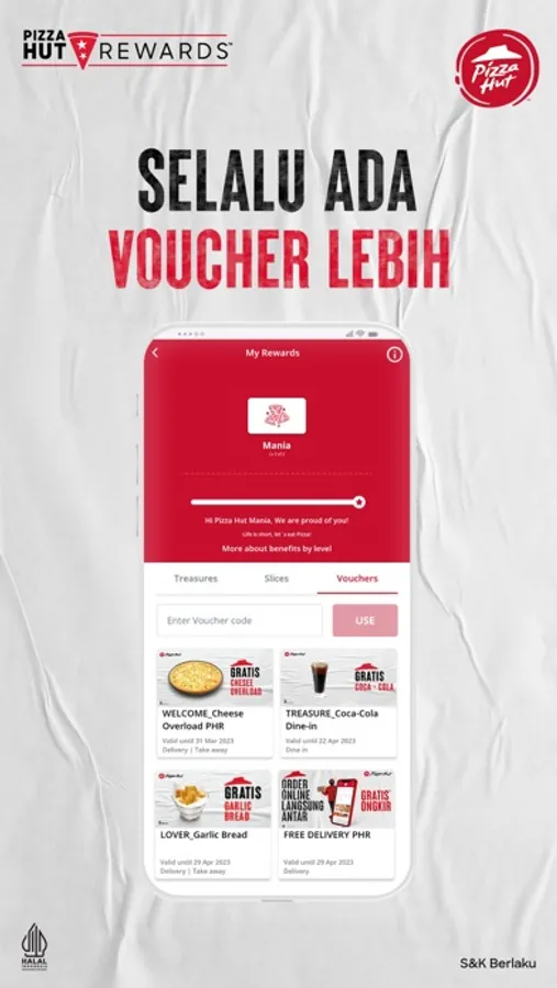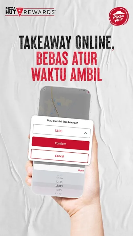 This application is valid only for ordering in Indonesia. Pizza Hut Indonesia application only available in Bahasa languages. Our 30 Minute Delivery Guarantee is applicable for all orders placed through the Pizza Hut Indonesia app with Delivery service from PHD. For more information please refer to our Privacy Policy listed here.