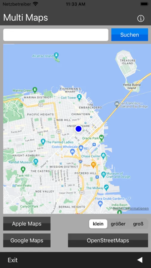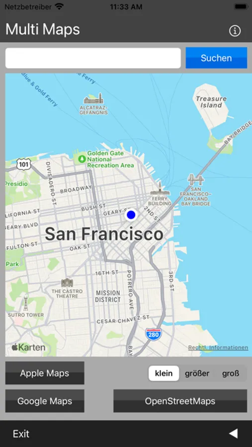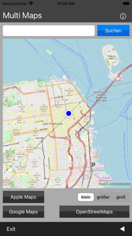 With Multi Maps you have different maps available in an app. Apple Maps, Google Maps, Bing Maps, and OpenStreetMaps. You can search in the vicinity of your location and switch and compare the different maps.