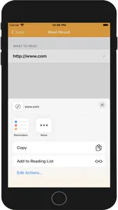 You can also pass the scanned data directly to the application such as message, mail, memo, Twitter, LINE, Gmail from the reading result screen.
