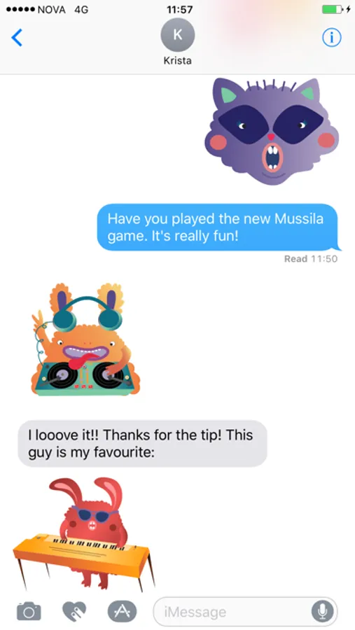 Express yourself with Mussila Stickers! Use the monsters and characters from the Mussila monster apps to say how you’re feeling. In this free pack you can share your favourite monsters and start a Mussila party