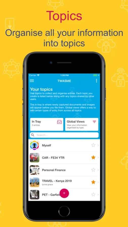 Twasme's topic based storage structure lets you arrange the things that are most important to you in the way that makes most sense to you.