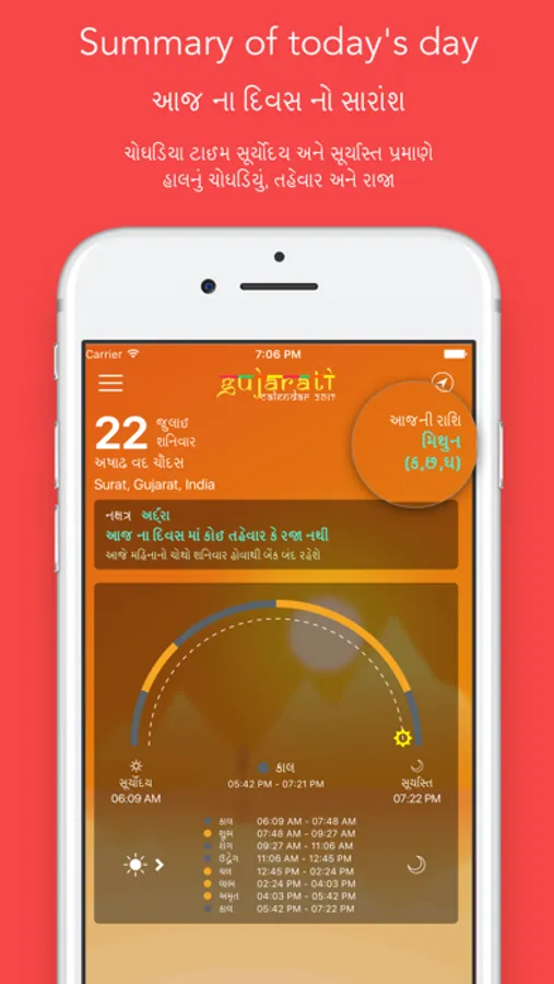 - Gujarati Calendar With Choghadiya, timing calculation based on Sunrise & Sunset time.