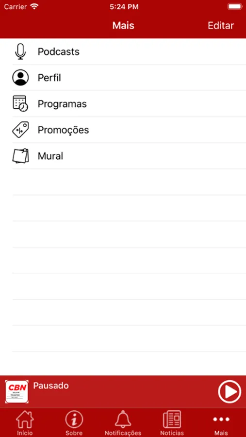 - Ouvir podcasts produzidos pela Rádio