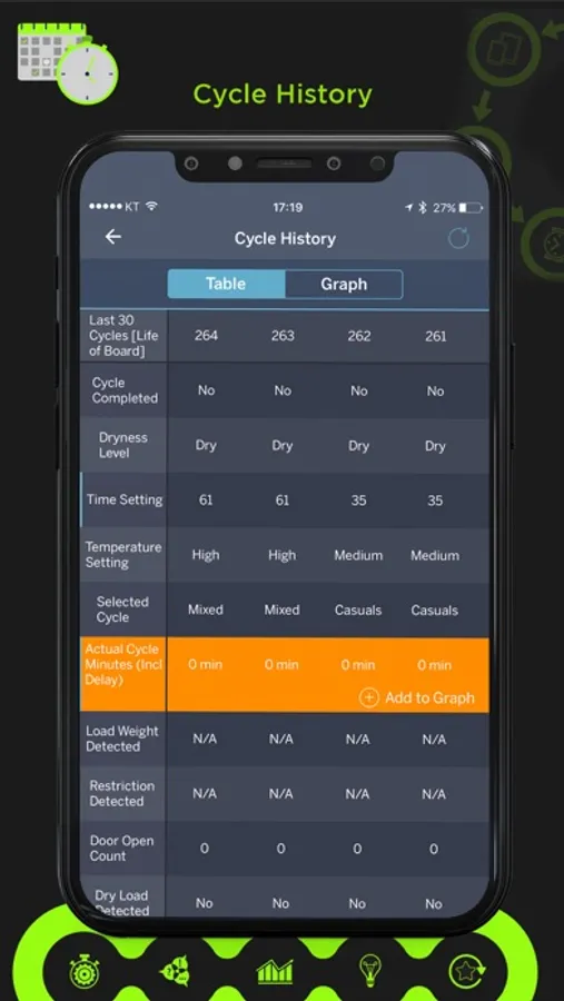Comprehensive view of recorded diagnostics data of the connected appliance.