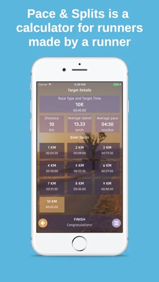 Want to run a sub 3 hour marathon, or qualify for Boston? Pace & Splits will help you do that by providing split times and pace/speed information. Want to set a personal best on your next 10K? Pace & Splits can help you. The key to a PR is to know how fast you need to run, and with the help of Pace & Splits you will know the target down to a second.