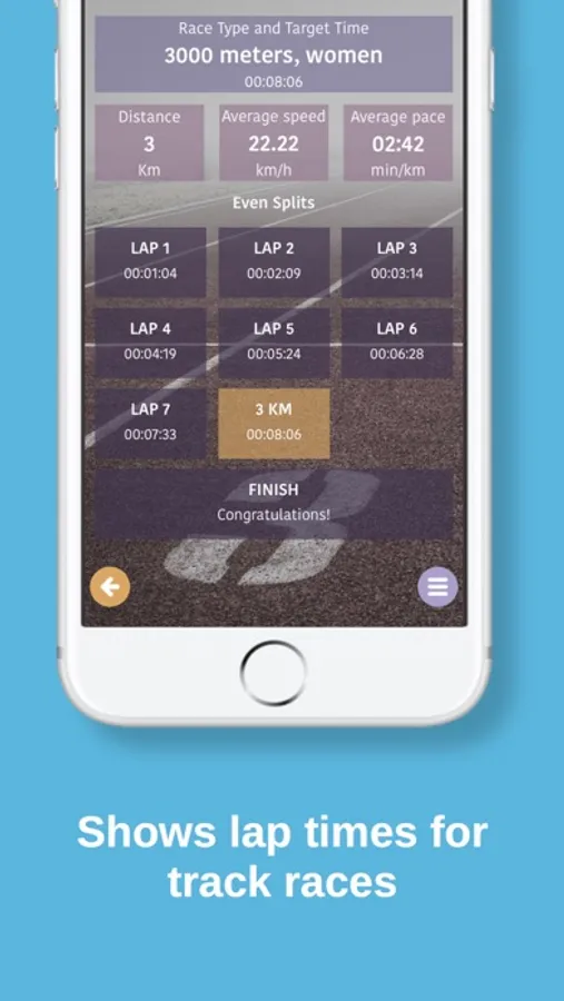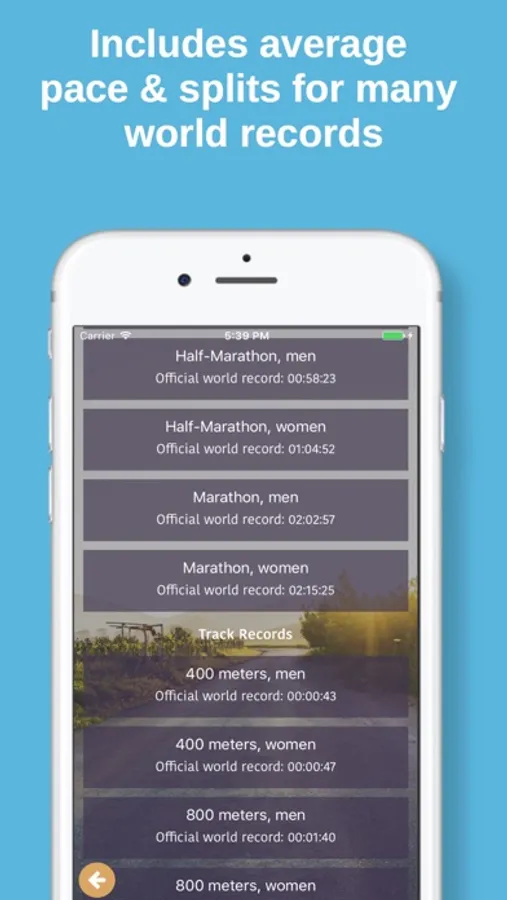 As a bonus feature, the app will also show you the splits for current world record races, to help you get motivated and see what the human body can do.