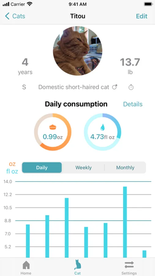 * Identify your cats thanks to the Catspad collar tag and create their profile: photo, age, gender, breed, sterilized, etc...