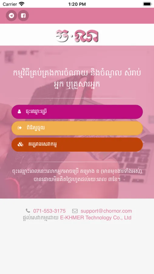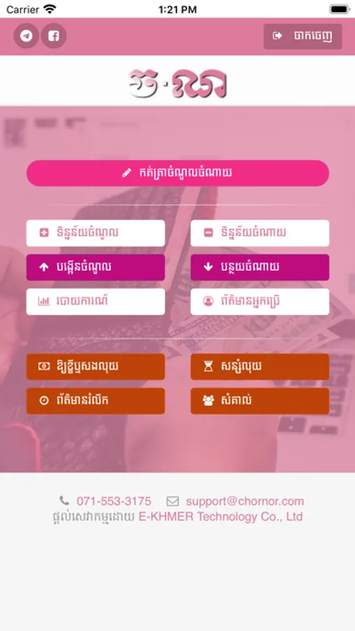 Chornor is app used to record revenue and expense for individual or family in Khmer. It has daily, monthly report.