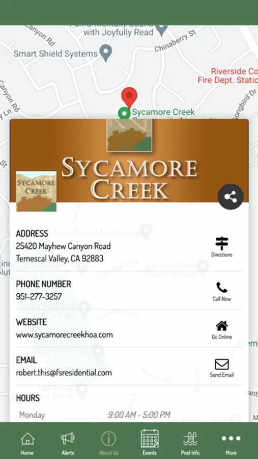 The Sycamore Creek Community Mobile App is designed to keep the residents of Sycamore Creek Community informed of events, activities, news, and other important community information. The App is used for alerts, social media connection, photo sharing, reporting violations and repairs, and connecting residents with groups and local businesses. This App also serves as a resource center for residents with rules, guidelines, and governing documents.