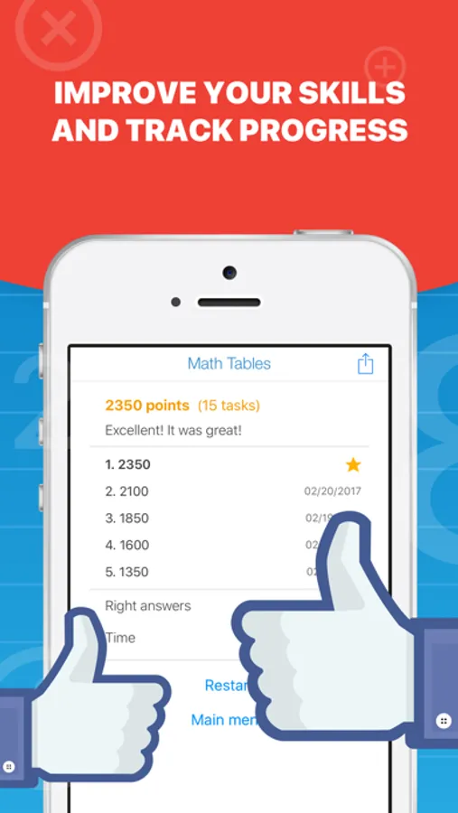 • Share you success with your friends. Tap on Facebook or Twitter button on Results screen and commit fresh results.