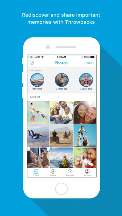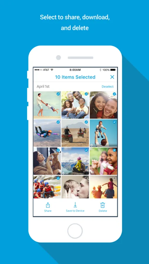 With the AT&T Photo Storage app, you can easily (and automatically) back up and secure your photos and videos, without sacrificing quality. Free up storage on your device with one touch to make space for capturing more memories. Fast speed and unlimited* storage space put your entire collection at your fingertips and ready to share.