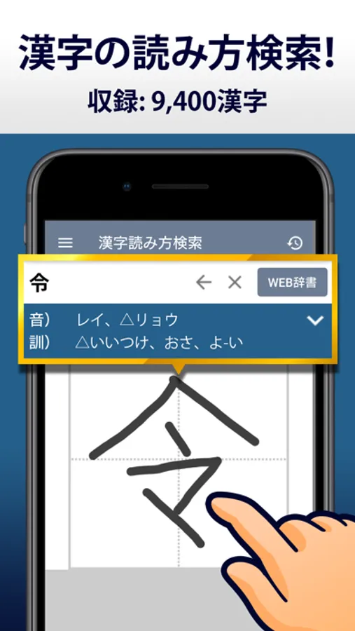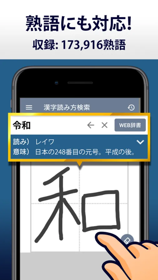 漢字の読み方や熟語の読み方を、手書きで検索することができます。