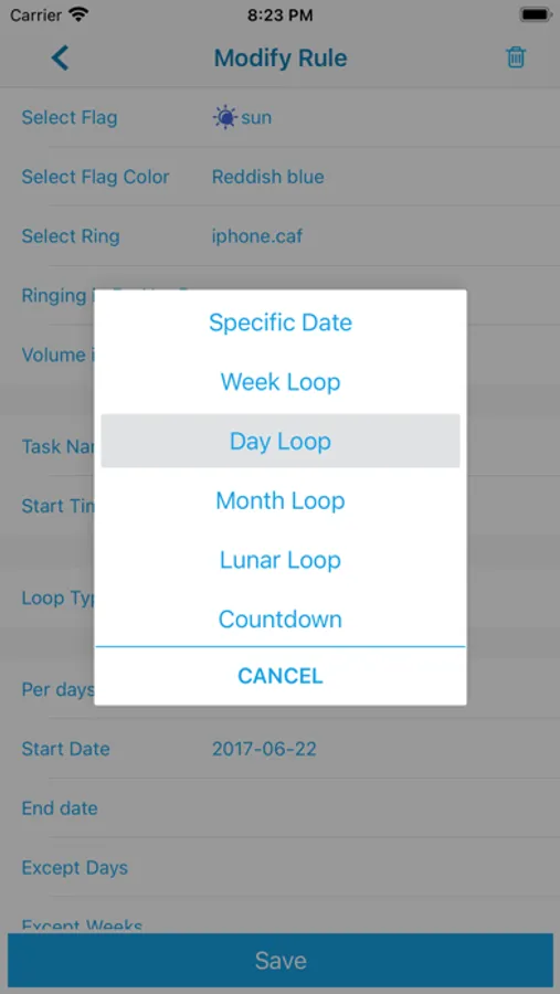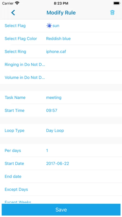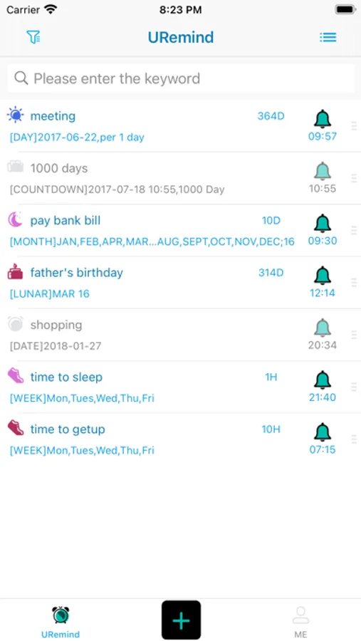 8. default configuration, configurable default tone, random icon, automatically generates the task (according to the rational allocation of mobile phone performance is automatically generated reminder list), the default rule generation name, remind Limited (according to the rational allocation of mobile phone performance generation period, the longer the impact speed).