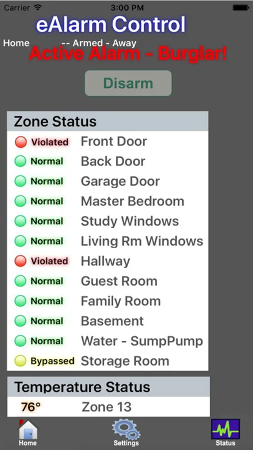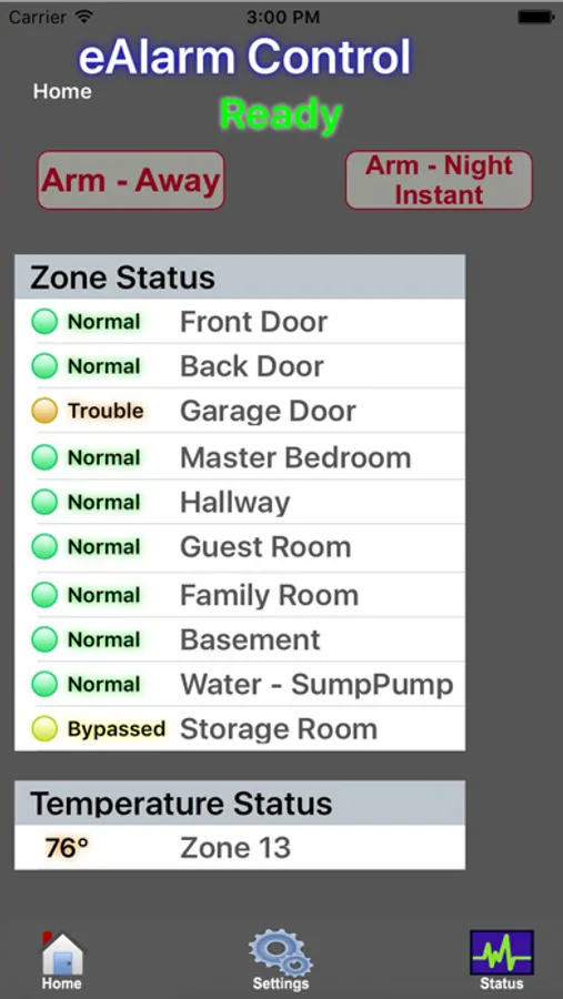 -Simple setup on the app. Just add your IP address / hostname, Username and User Code from your alarm system.