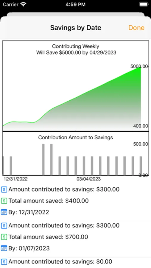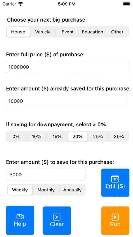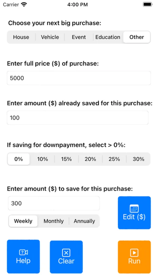 Do you have big plans for the future, like buying a house, car, or going on a dream vacation? This cool app can help you save up for those special purchases! Just set aside some money each week, month, or year, and watch your savings grow. You can even edit your saving schedule to fit your specific plans. The app will show you when you'll have enough money saved to make your big purchase. Start saving for your future today with this awesome tool!