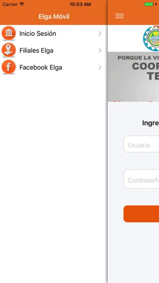 Aplicación de servicios móviles para afiliados a Cooperativa Elga