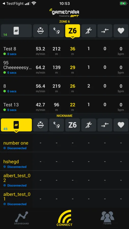 Using the latest in BlueTooth Low Energy technology, the GameTraka app allows you to make real-time decisions based on the GPS results delivered from your SPT device to your phone. Receive real-time metrics such as session length, total distance, zone 6 metres gained, sprint counts and impact counts.