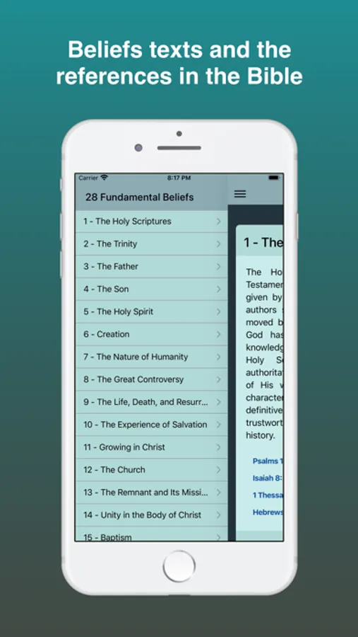 28 fundamental beliefs SDA is an application that shows the 28 doctrines of the Seventh-day Adventist Church.