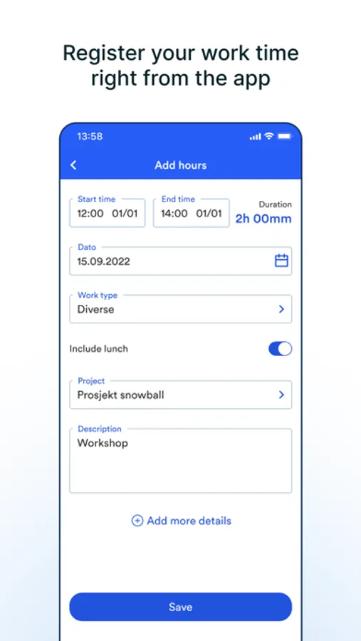 Log and keep track of your hours. Add orders and projects to your hours for straightforward invoicing.